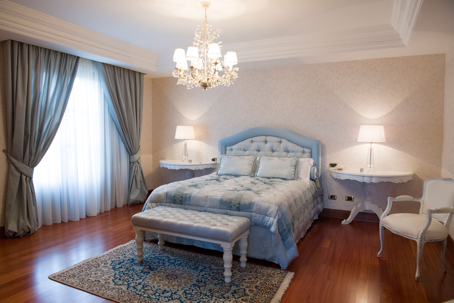 Un caldo parquet di doussiè caratterizza la zona notte.
